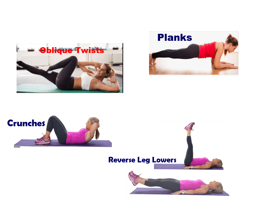 - กลุ่มท่า การบิดลำตัวหรือท้องด้านข้าง เช่น Oblique Twists